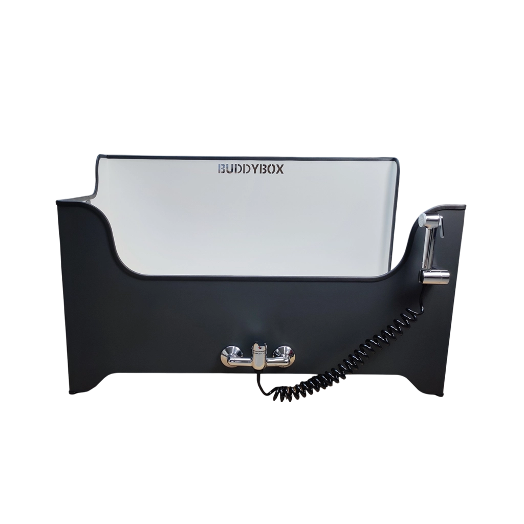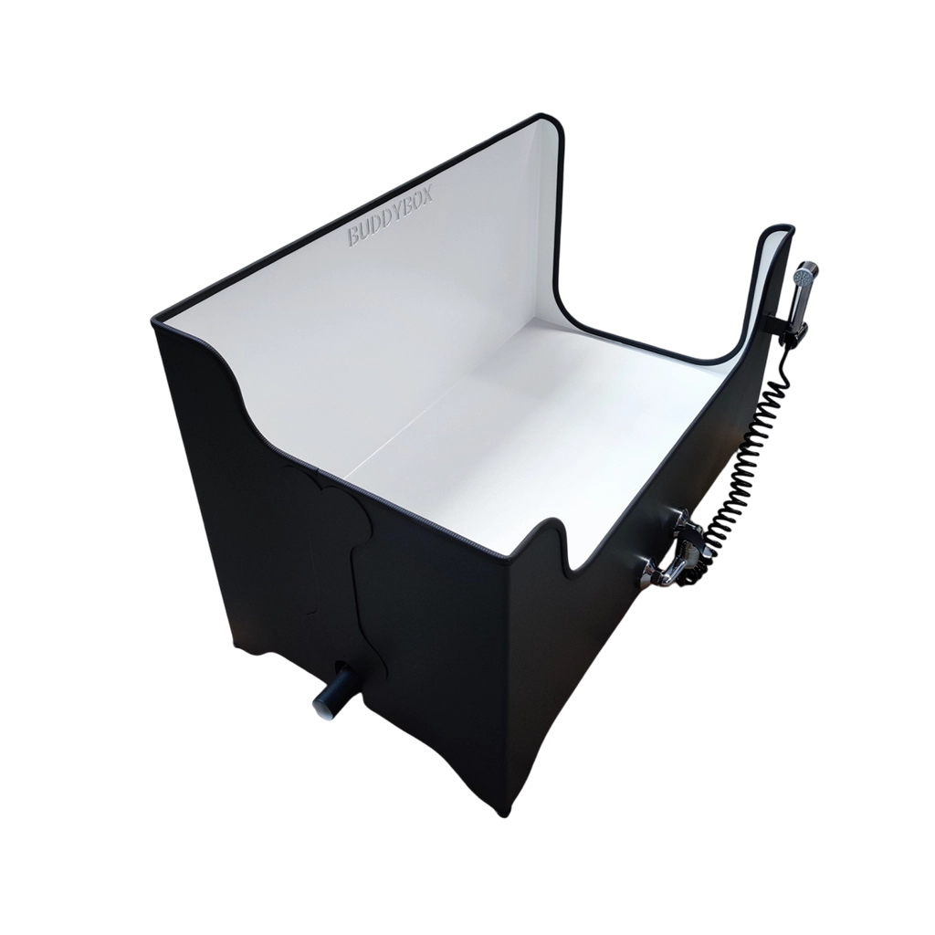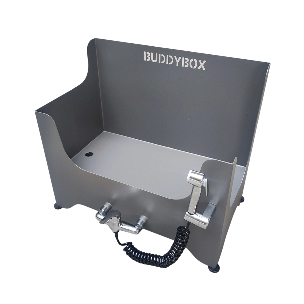Die Buddybox ist die Antwort auf das Dilemma vieler Hundebesitzerinnen und Hundebesitzer. Je nach Größe Deines Vierbeiners hast Du die Wahl zwischen drei verschiedenen Modellen Deiner Hundedusche: Buddybox S, Buddybox M und Buddybox L.