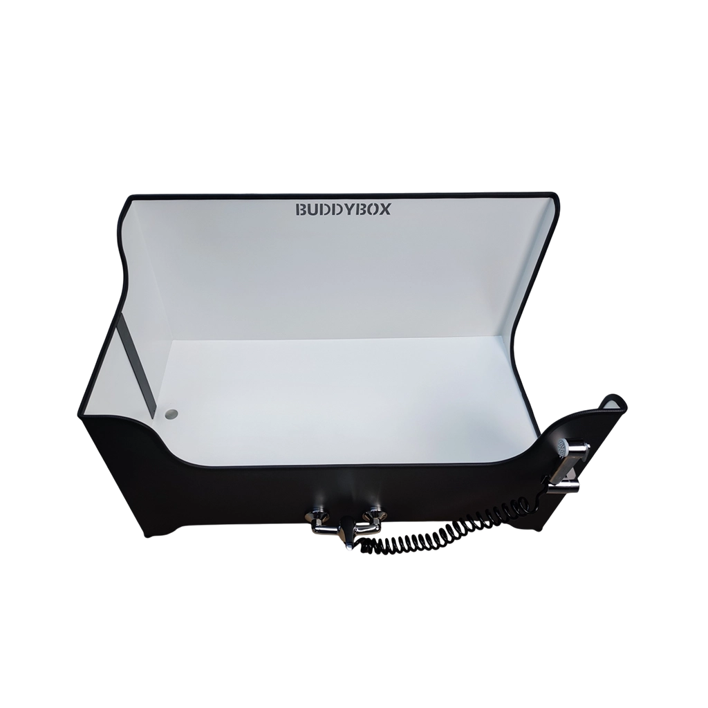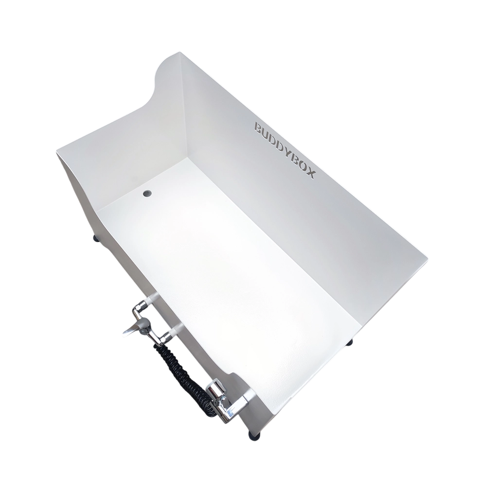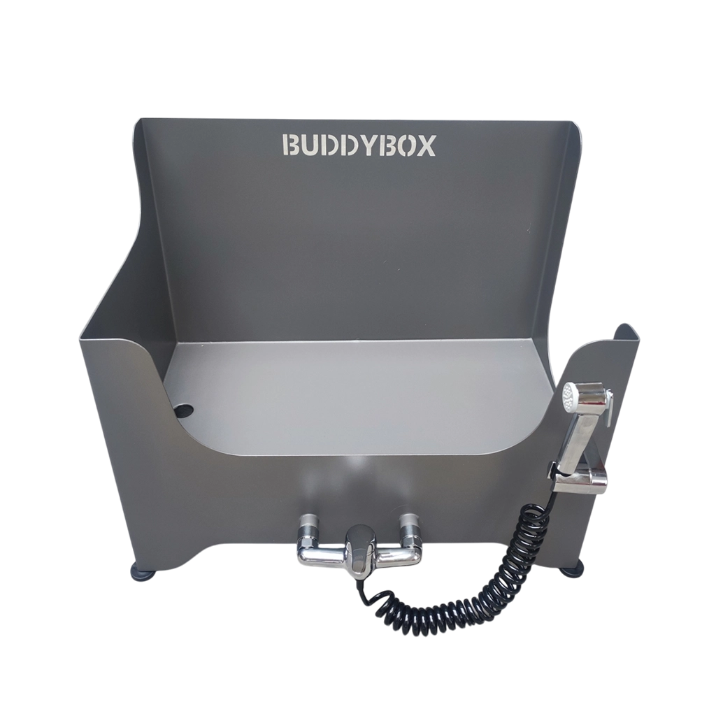 Die Buddybox ist die Antwort auf das Dilemma vieler Hundebesitzerinnen und Hundebesitzer. Je nach Größe Deines Vierbeiners hast Du die Wahl zwischen drei verschiedenen Modellen Deiner Hundedusche: Buddybox S, Buddybox M und Buddybox L.