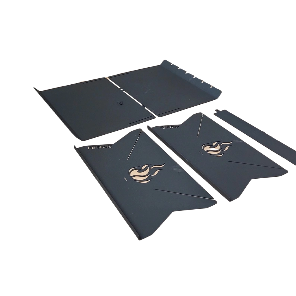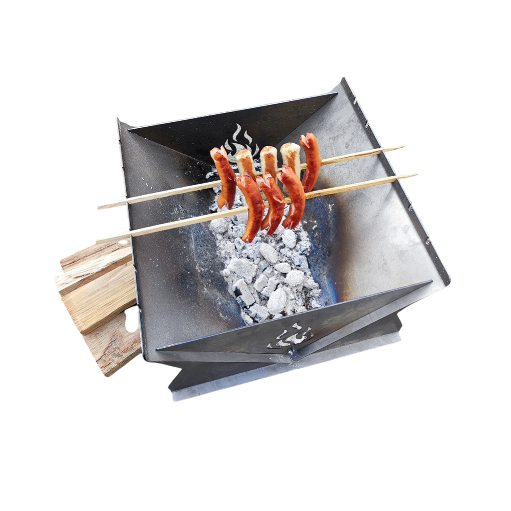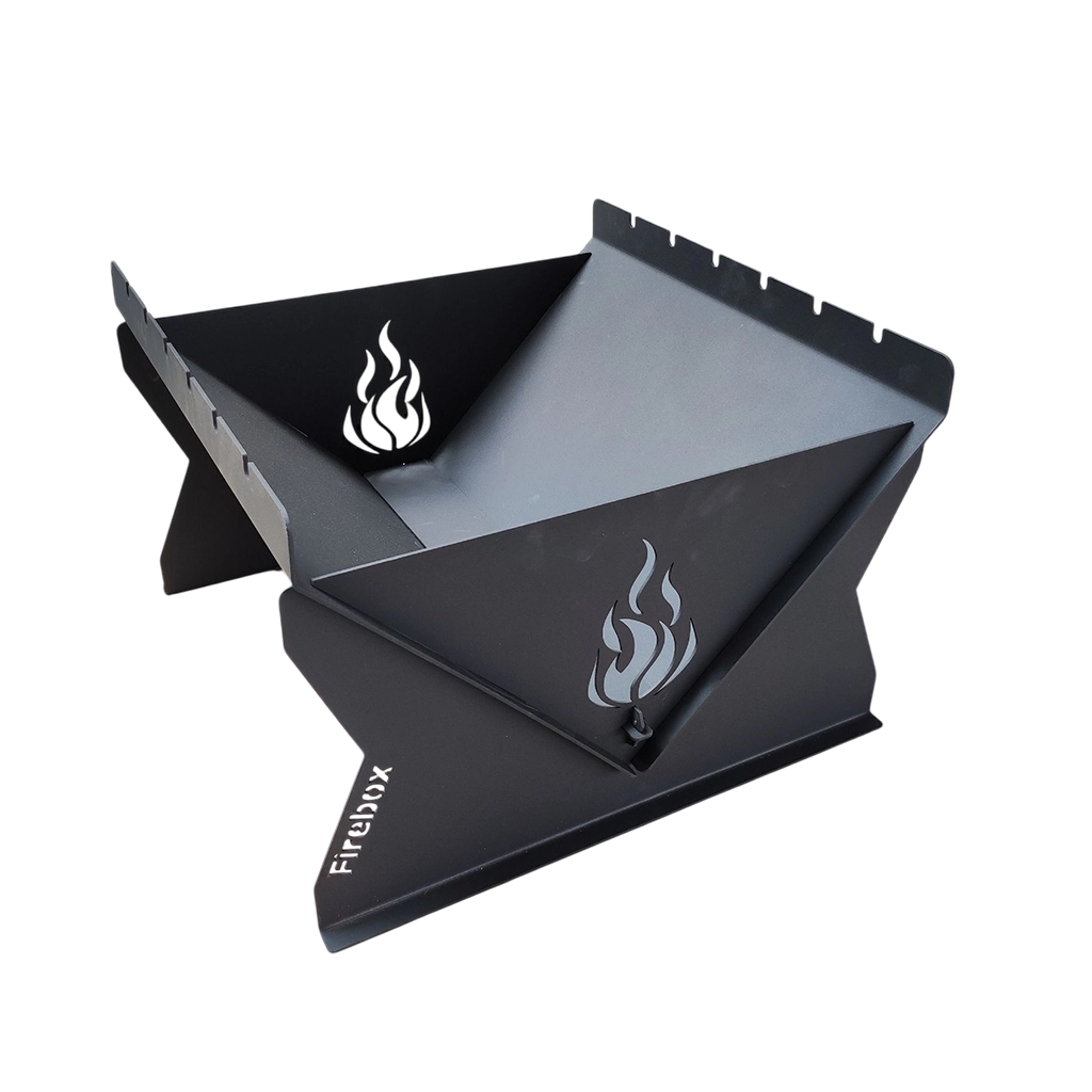 Firebox BLACK aus pulverbeschichtetem Stahlblech mit Grillfunktion.