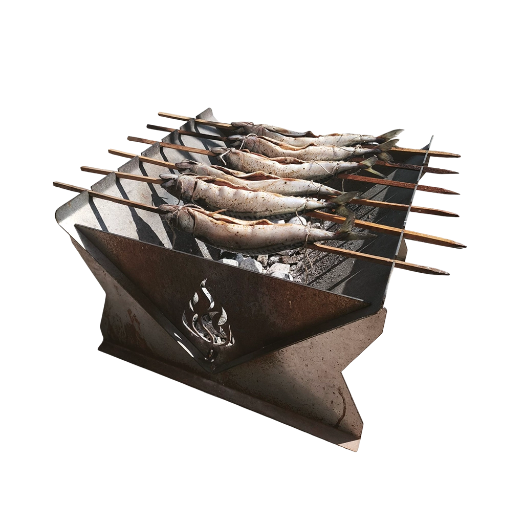 Die Feuerschale ist aus Stahlblech gefertigt. Durch die Materialstärke von 3 mm ist die Feuerschale sehr stabil und massiv. Der Aufbau ist durch das einfache Stecksystem mühelos und schnell erledigt. Der Korpus besteht komplett aus 3mm Stahlblech mit natürlicher Belüftung. Die hitzebeständige Pulverbeschichtung sorgt dafür, dass die Feuerschale extrem langlebig bleibt.