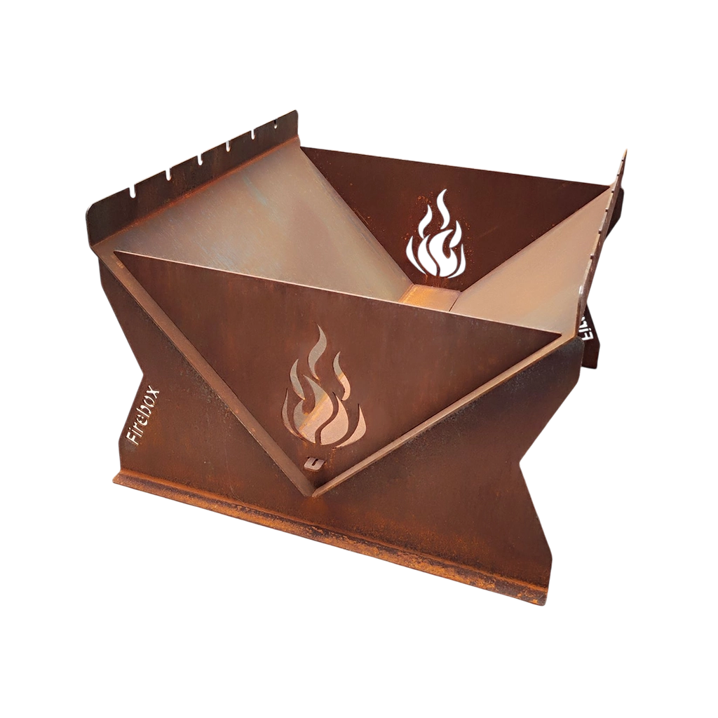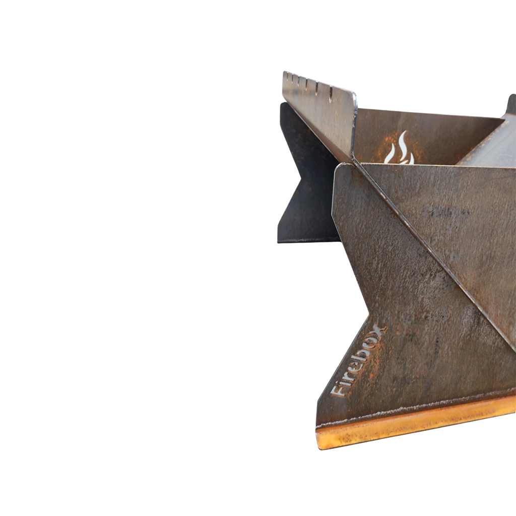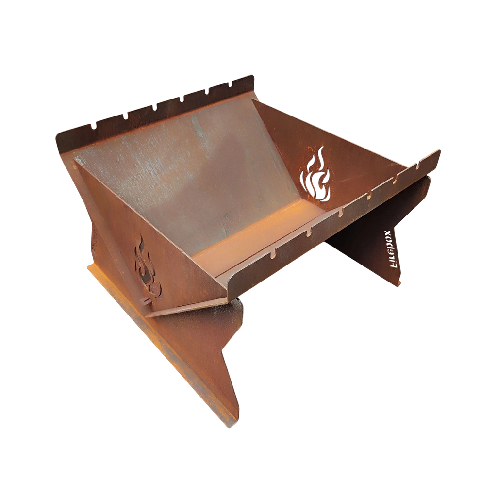 Firebox CORTEN aus Cortenstahl mit Grillfunktion.