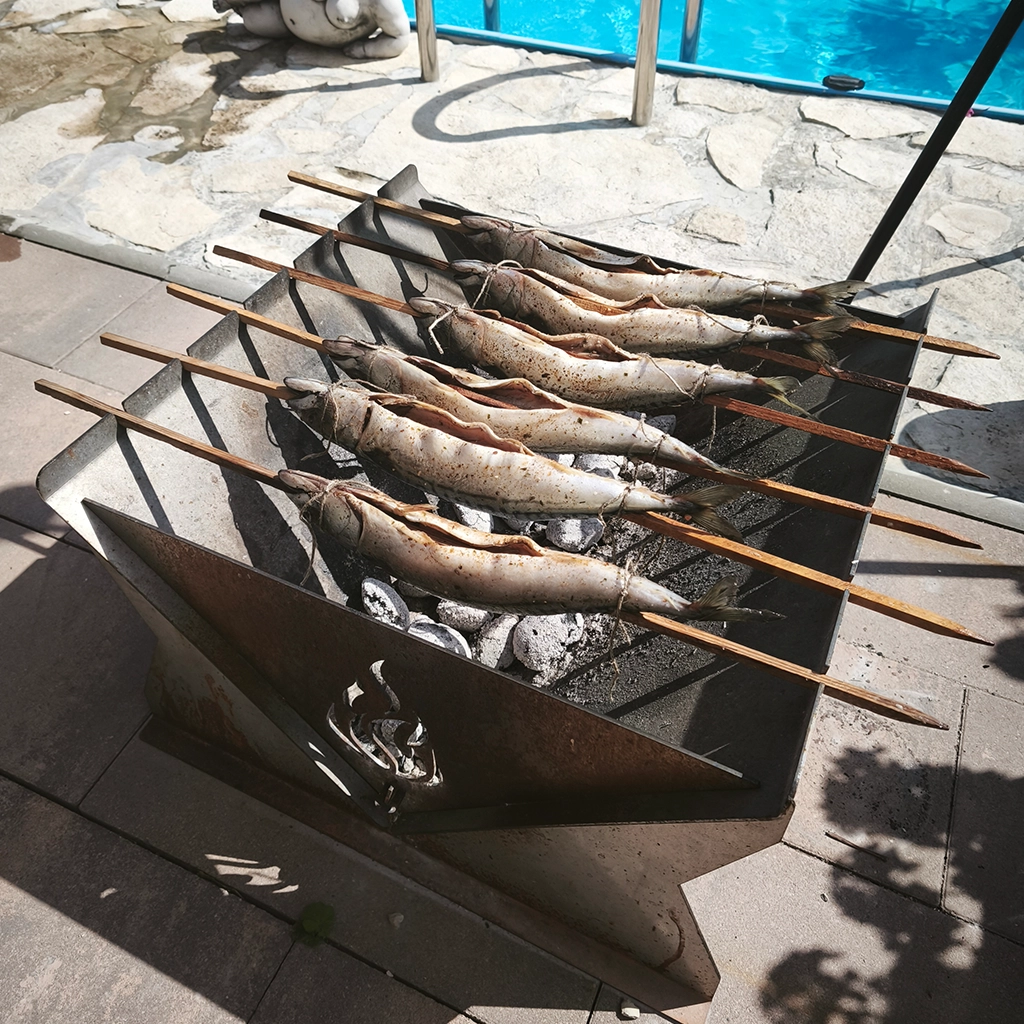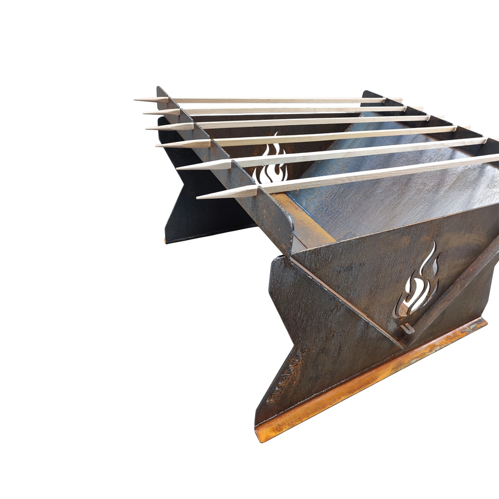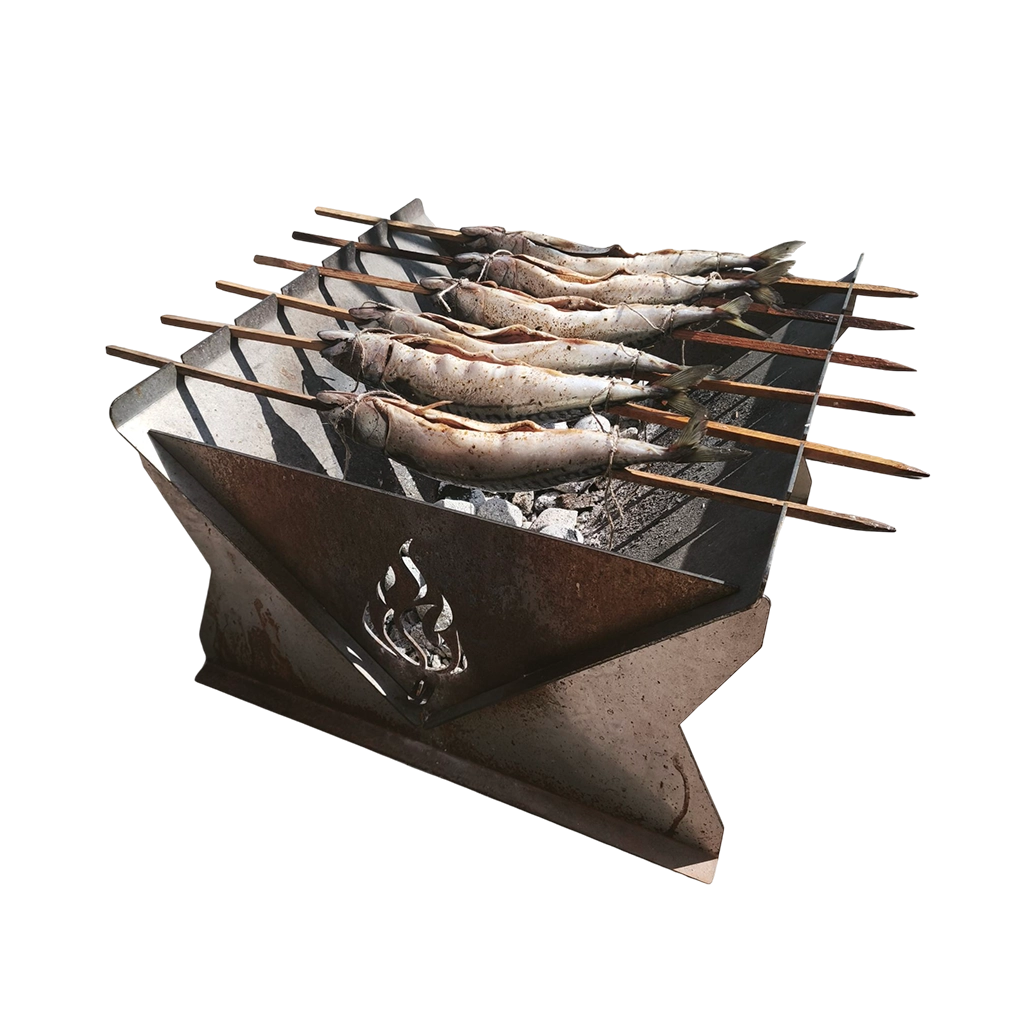 Firebox CORTEN aus Cortenstahl mit Grillfunktion.