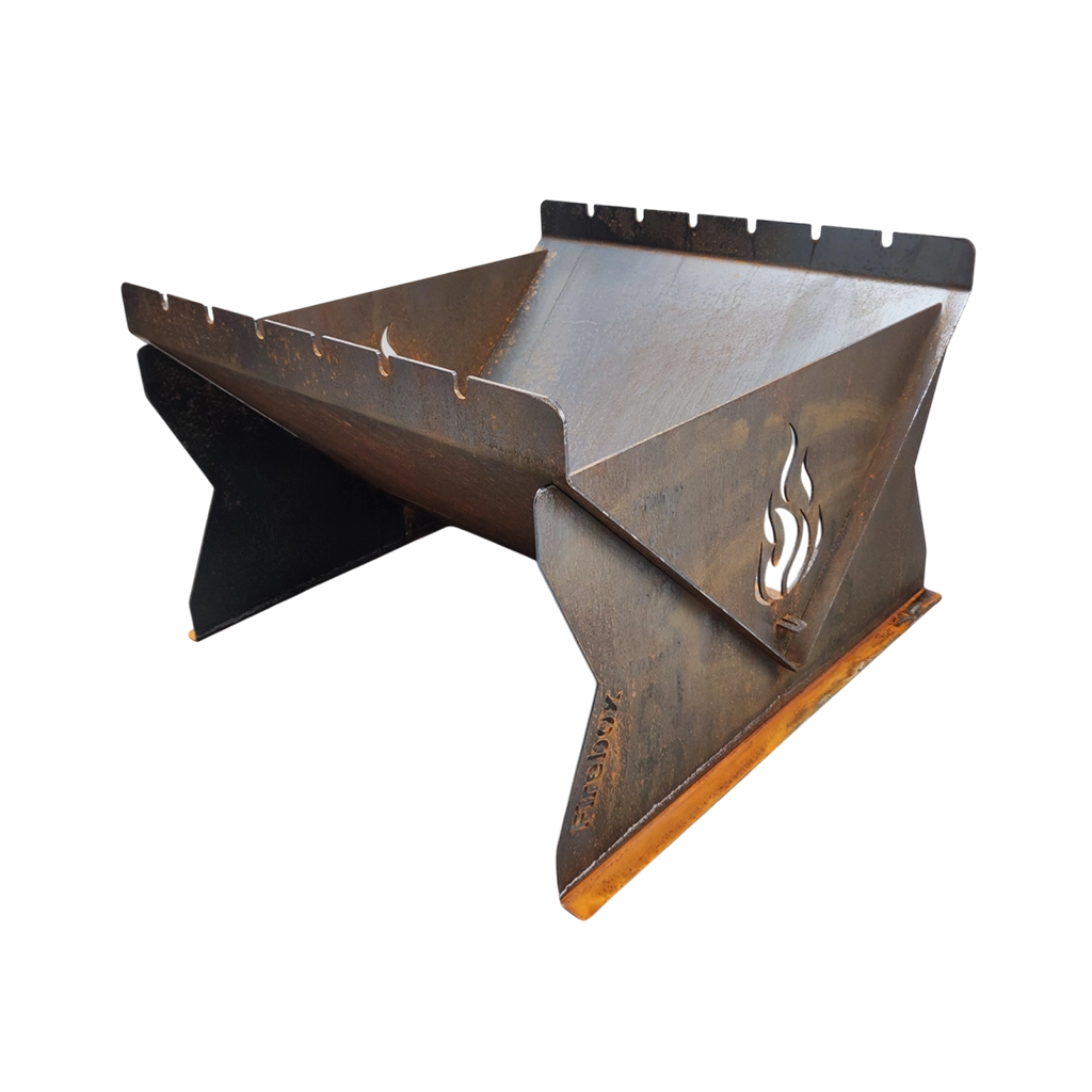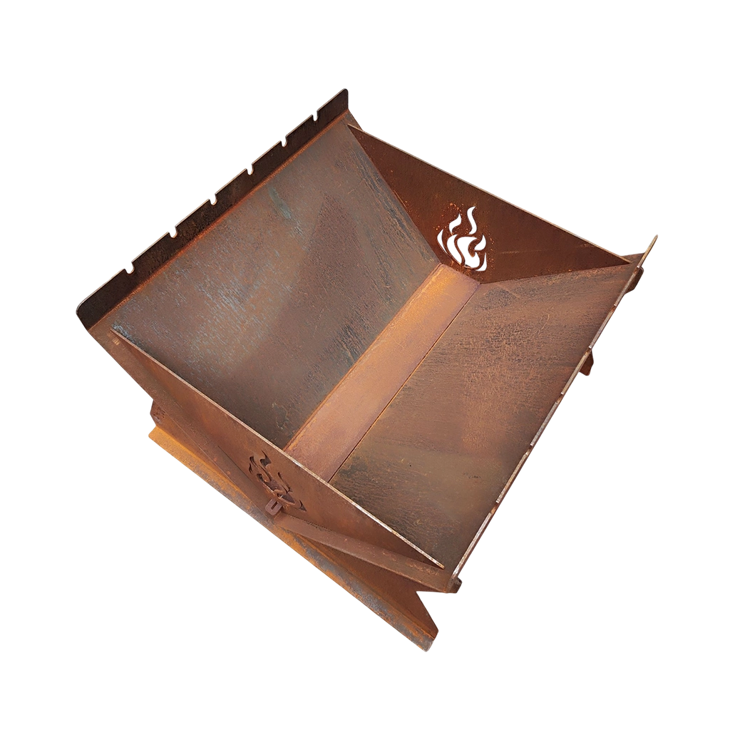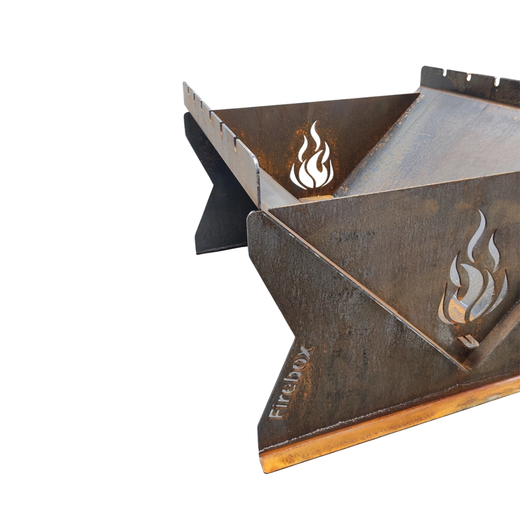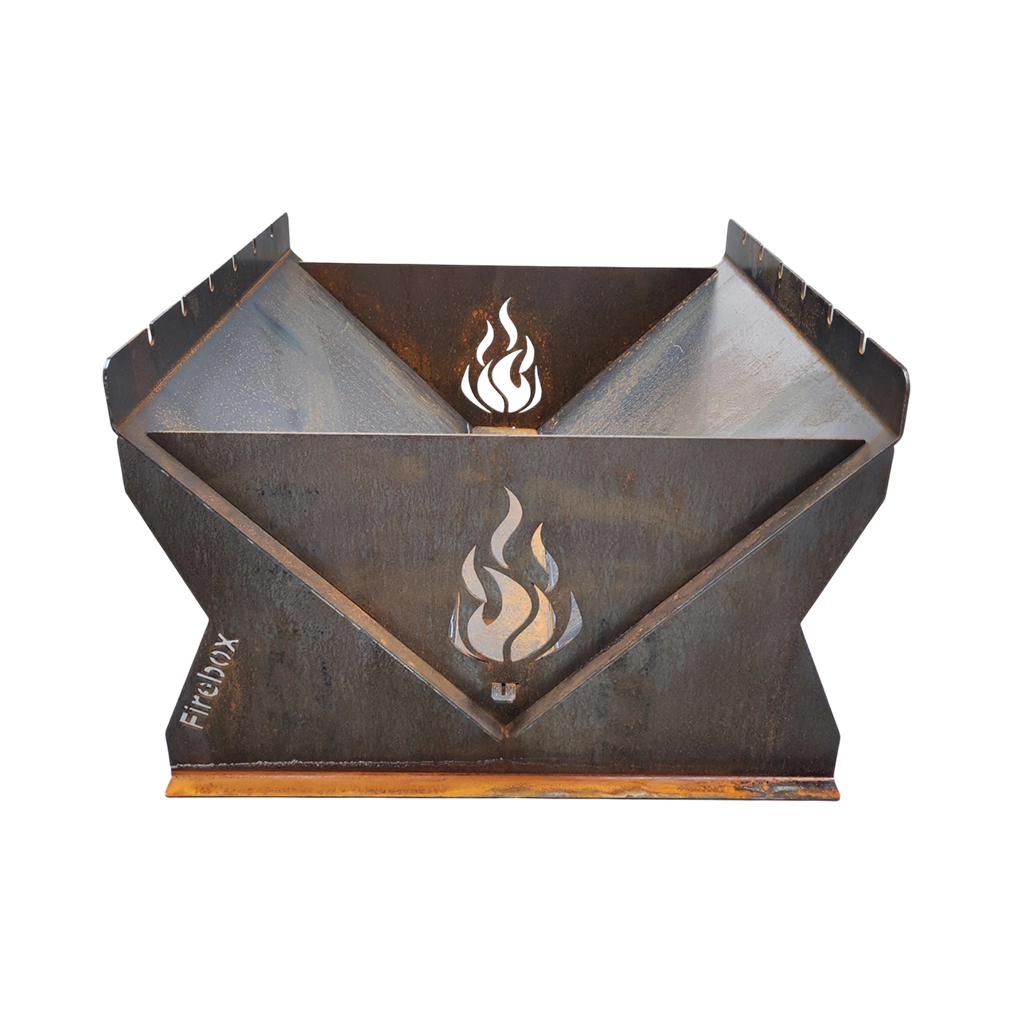 Die Feuerschale ist aus hochwertigem Cortenstahl gefertigt. Durch die Materialstärke von 3 mm ist die Feuerschale sehr stabil und massiv. Der Aufbau ist durch das einfache Stecksystem mühelos und schnell erledigt. Der Korpus besteht komplett aus Cortenstahl mit natürlicher Belüftung. Der echte Cortenstahl sorgt dafür, dass die Feuerschale extrem langlebig bleibt. Im Lieferzustand ist die Firebox aus Cortenstahl bereits vorgerostet.